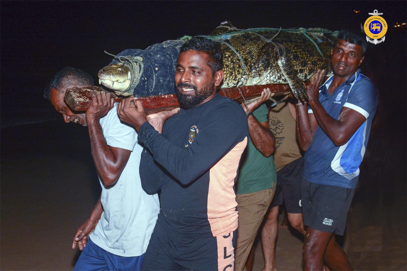 Upon being alerted by hoteliers & residents, a quick coordinated response was mounted by the Sri Lanka Coast Guard (SLCG), the Department of Wildlife Conservation and Mirissa community. The crocodile was safely captured and relocated to its natural habitat without any harm.